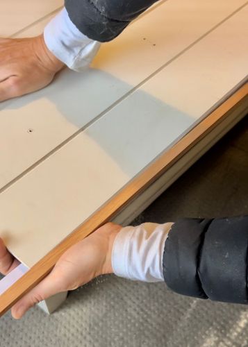 I found some wood-look moulding capping at Bunnings on clearance so we used that to put on the edges of the panels as an extra feature.
