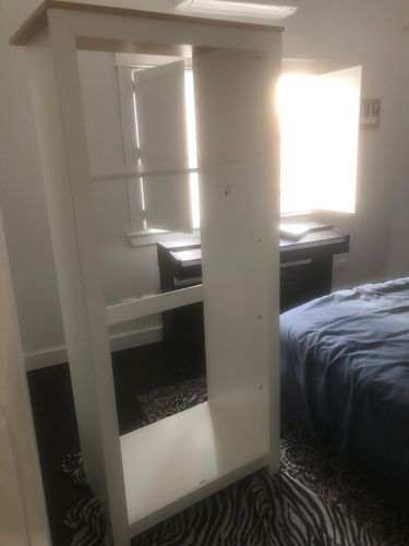 I have also added a new bed, purchased a flat pack wardrobe, made coat hooks, shutters, up cycled a bedside drawers and made a floating picture frame.