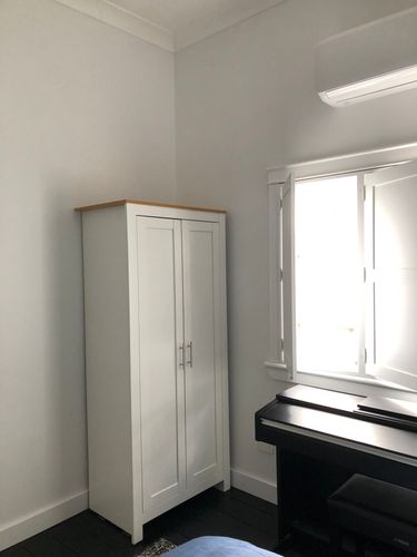 I have just completed painting and finishing off a bedroom. I repainted the walls in Lexicon 1/4 strength low sheen, the floors were painted in satin black, skirting boards, architrave and windows and door in satin white.