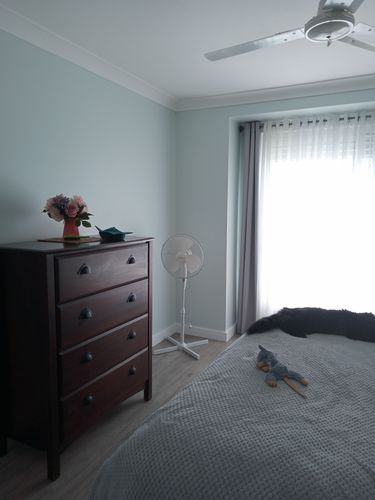 I unfortunately bought a house riddled with active termites, being so let down by the bogus building and pest inspector that was 2 years ago. Now I have never painted a thing before and and so I found it daunting to say the least but I must shout out to the crew in Plainlands paint and the Dulux chat line a big thankyou .. This is how it looks now . I used White ceilings and trims White Box quarter on gyprock walls and Tiamo on feature with gray accents hope you like it . 4 bedrooms down 😁I still have the rest of the house to do