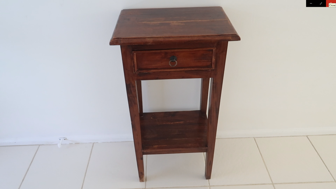 household bleach and painted it on the sanded top with a paint brush. I let this dry in the sun, it didn't take long and then I repeated this step three times or until you greet the look you want. It not only lightens the timber but it gets rid of that orange colour. I then wiped it down with a wet rag, let that dry and then sanded it lightly again because the bleaching made it feel a bit rough. I then rubbed in two coats of beeswax which gave me the result you see in the photos. In the video I show you step by step the process๐