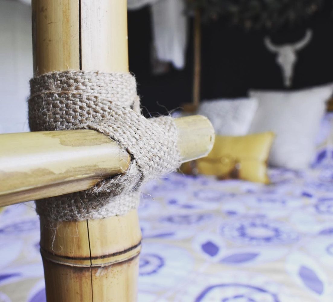 I've put a small list together of the products you have mentioned to benefit our other members that might like to take inspiration from your project. I believe you have used bamboo rafts, bamboo poles, jute webbing and cable ties.