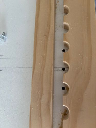 When all edges were done, I routered the pin shelf holes using my diy pin shelf jig.