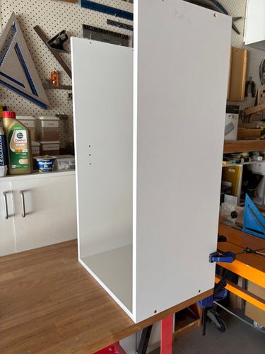 I had some white melamine board left over from another project, my grandson asked if I could make him a bookshelf for his place, I ended up making two units.