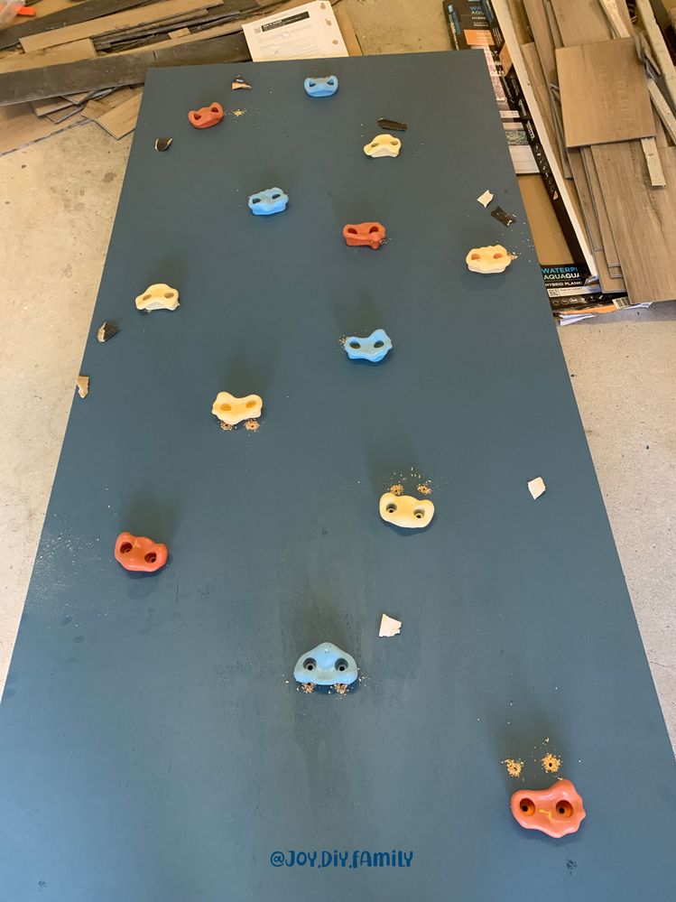 We spray painted the climbing rocks, then attached them to a 20mm plywood.