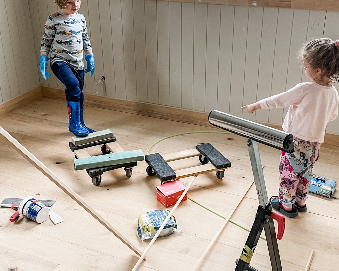 Connor has a lot of toy cars so we made a toy car storage using left over VJ panels and upcycled an old sandpit truck to make it fun, we added some lights to second as a night light.