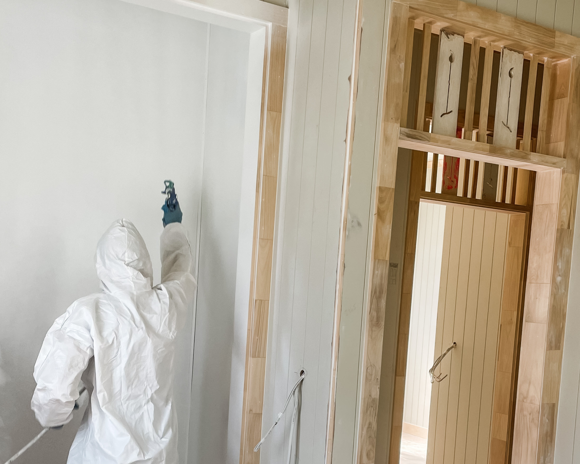 We started by sheeting the room with VJ board, patched the nail holes and sanded.