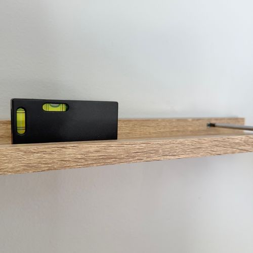Flexistorage Photo Shelves are so easy to install and come with instructions. Just make sure you have a Spirit Level to ensure the shelves are level.