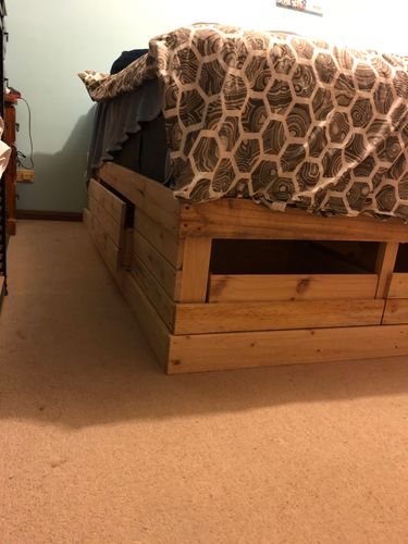 @DiamondDave's pallet bed frame with storage is a fantastic D.I.Y. project. If you take a moment to look at the pictures you'll see that it's possible to assemble this step-by-step. It all depends on mattress size. If you're building your frame to the size of a king sized mattress 1980mm x 2030mm. You can use those numbers as a reference for the rest of the build.