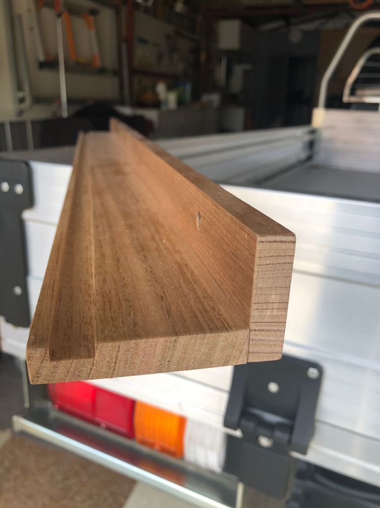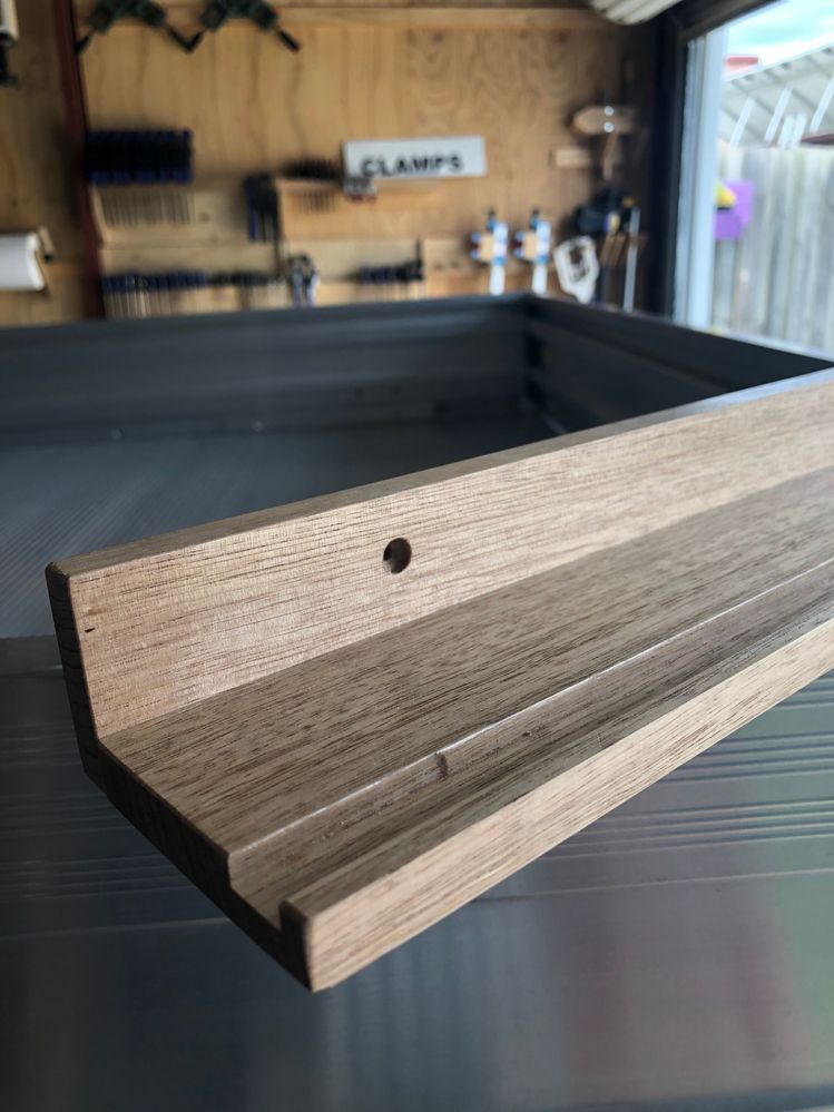 Made these simple CD display shelves for my one of my grandkids bedroom, they are made from Tassie Oak, 42x12mm for the backing and 65x12mm for the base, glued and screwed from the back, I also routered a 12 x 3mm groove on the base to prevent the cd from slipping off the shelf, painted in satin clear coat, they were mounted directly to the wall using small wallmates. These can also used for displaying photo frames.