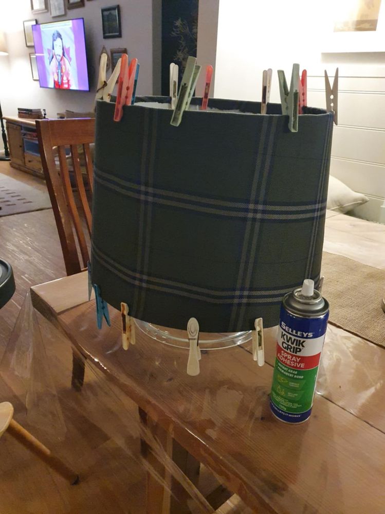 I loved upcycling this beautiful old timber lamp - while it had a beautiful base, the shade was dated (and dirty!). I cut some tartan fabric and applied it with spray adhesive (attached to the shade with laundry pegs to dry overnight!).