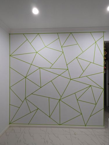 1. Come up with random geometric pattern on the wall. We wanted thin lines since it was small space so used 12 mm painter tape.