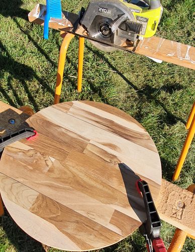 What a cost-effective and ingenious way to build those tables. It is so convenient to use those pre-cut round timber panels, creating a table becomes very easy and all you have to think of is what kind of legs you would like to put on them. I like the minimalist look you've designed for the tables, using the panels as a base makes them very strong and stable. What finish did you use on the tabletop and how long did the entire project take you to finish?