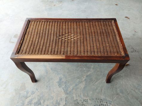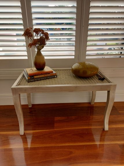 I wanted to try a blonde wood / scandi style table on this $6 tip shop find. The timber is mixed with a top made of rattan.