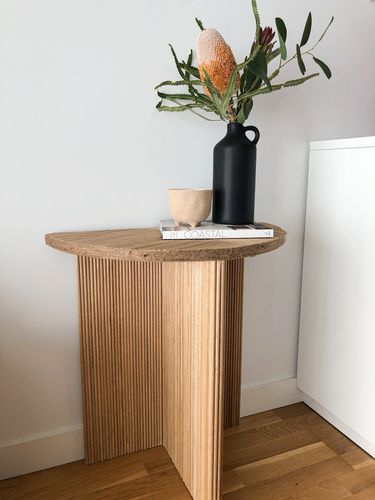 Here is one of my first DIY and whole time favorite by many people. I inspired myself from an Australian Designer who creates the most beautiful items and DIY this side table from scratch. I love all the curves and variations of the table due to the timber.
