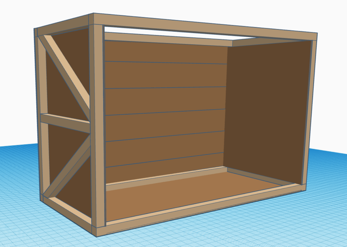 I've spent some time and put a few renderings together for you. Hopefully, they should give you an idea of how to go about constructing a similar unit. I'd suggest using DAR Pine for the frame and door, as it comes primed and is all very straight. You can use MDF panels for the bottom and sides. The back looks to be made from VJ panelling. We have a variety of panels that you can use for the top.