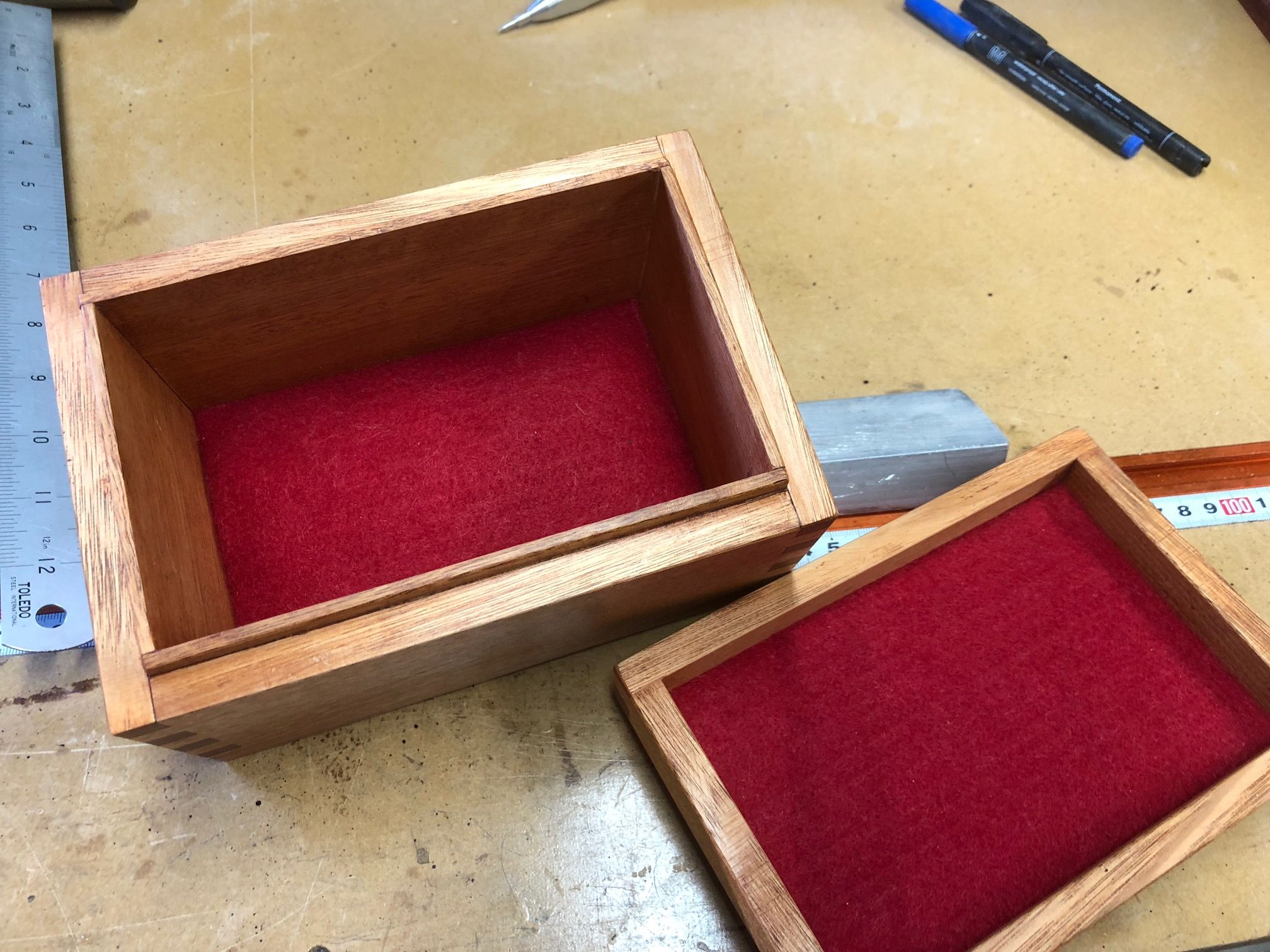 I will tag @r23on for you to ensure he sees your question. I know he likes to work with Australian hardwoods such as Tasmanian oak and Mountain Ash but am sure he will be happy to confirm what he has used here for the jewellery box.