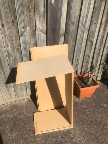 Remove chipboard drawers, these were glued on, I had to chisel off the old chipboard , then sand flat