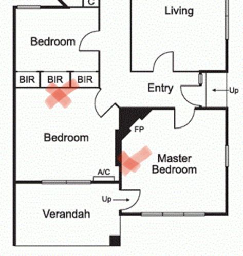 We're thinking of keeping the built-in's in the smaller room due to the double brick walls, and the fireplace in both the bedrooms.