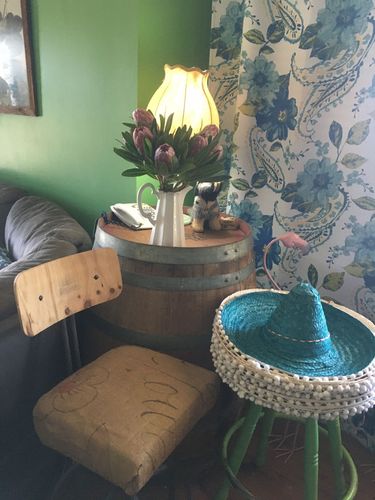 The top is a slab of tallow wood sliced with a chainsaw by my father in law. I love things to have a story and this is a little piece of my husband’s family farm. We don’t have a set style, we collect things as we go and have found our friends and family love to present us with things they have made/refurbished or found. Our goal is to ensure our home is a comfortable welcoming place that is not precious, so there is not one favourite part. The colour is lovely and the team at our local Bunnings are always keen to see what we are doing next, mind you this room took about 20 sample pots before we found this 😁