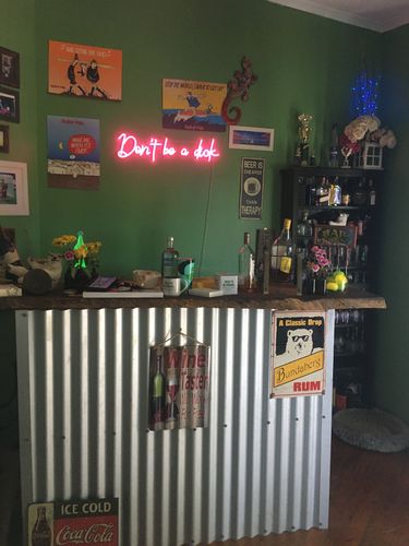 I love that bar you've created! Is that a live edge timber slab you've used for the top? I'm really digging the style you've gone for; there is so much of interest going on.