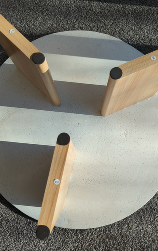 To position the legs I marked out the centre and then drew a 15cm triangle around it. I then placed the legs so that they were pointing towards the centre and marked around them before glueing them down. I then waited overnight (about 12 hours) before turning it over to reveal the finished product.