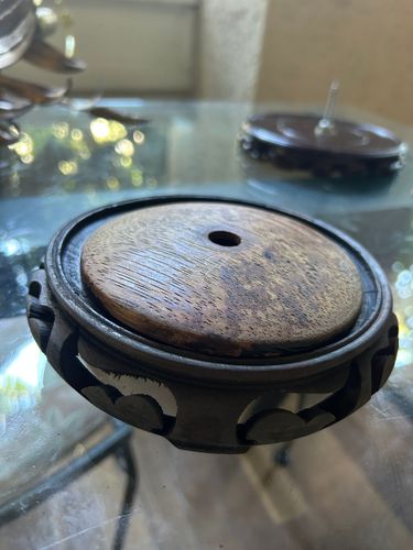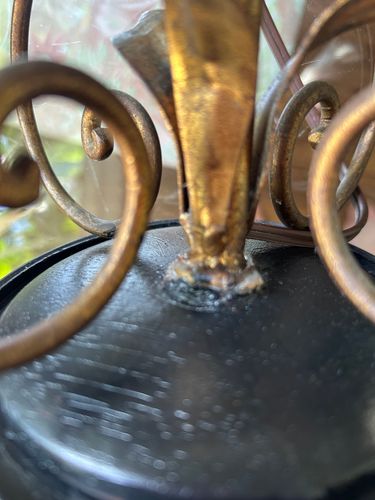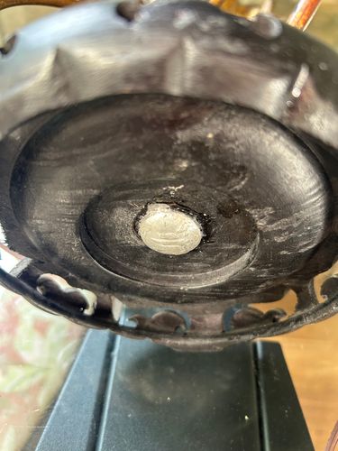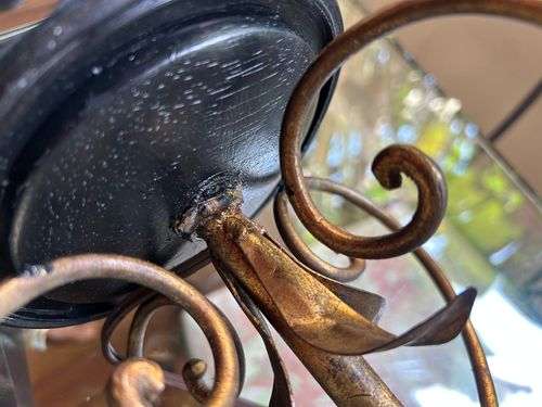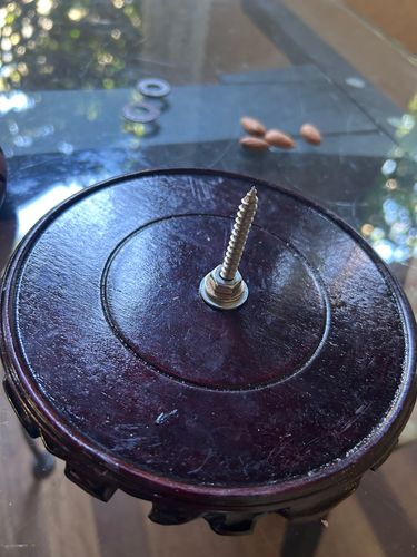 Hi- I’m attaching a wooden base to a vintage metal table lamp.