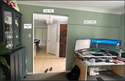 1. ) would it be possible to install 2 barn doors, one opens to left and another to right. One side of the wall (behind the desk) has spsace of 2100mm, another side of the wall has space of 700mm (but has power switch on the wall) as you can see on the image ?
