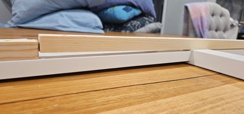 Hi there - I am currently assembling a single bed frame and in my case there are 3 slat runners per side that have to be screwed into the larger side panels. But the centre support in between the two side panels is thicker than the side panels are, and thus the middle of the 3 slat runners sits higher than the other two and cannot be screwed in. Any ideas?