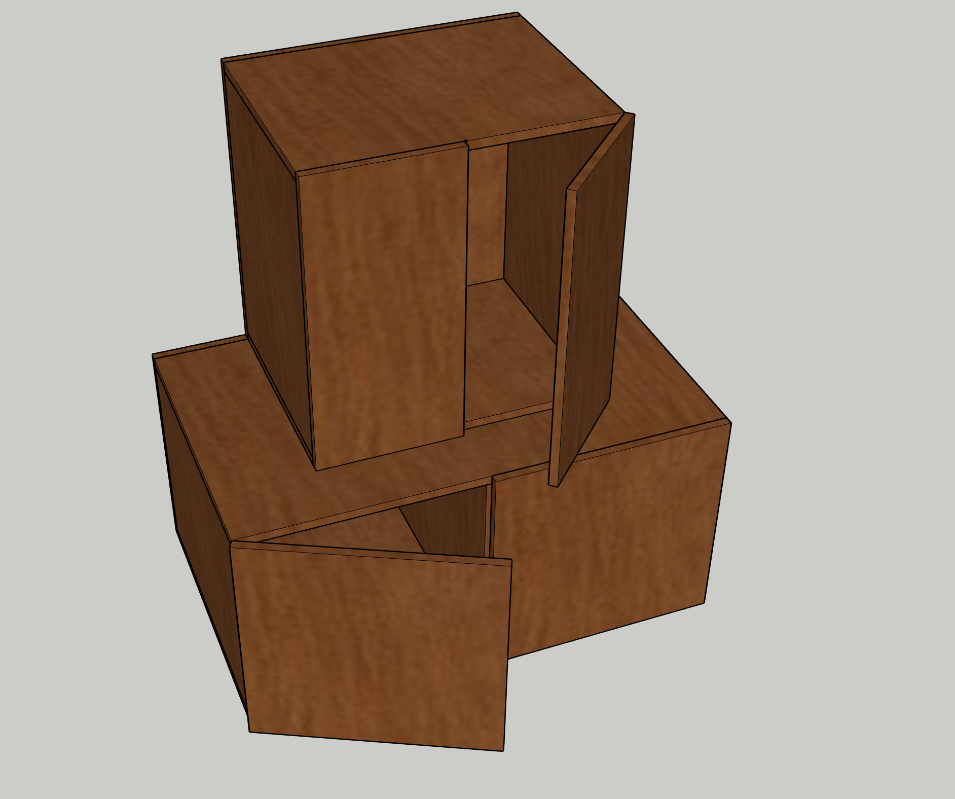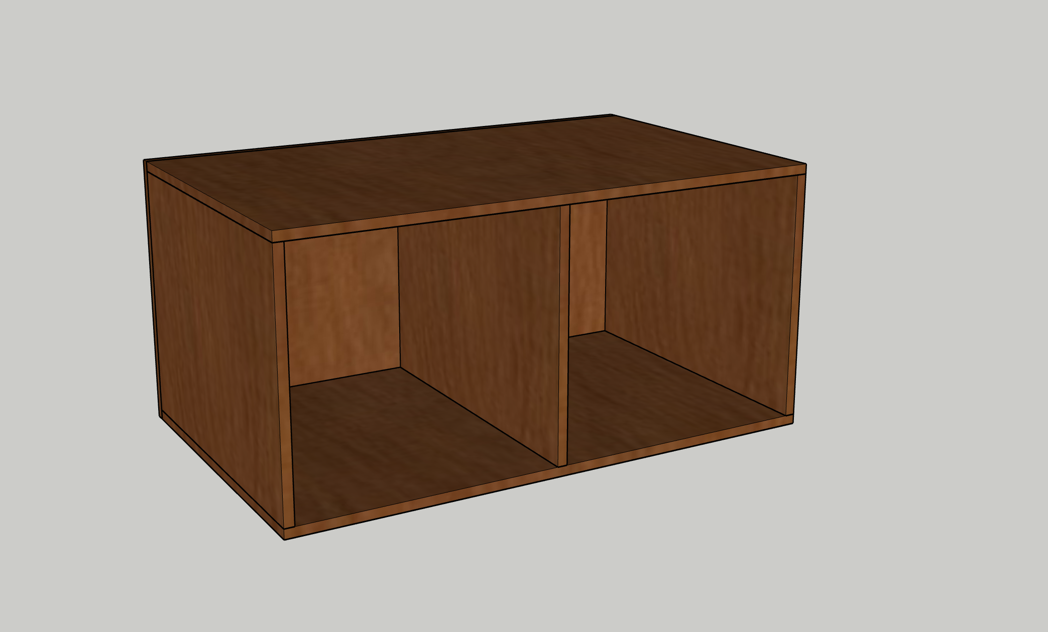 You could then add two doors in the same way as the bottom, by halving the width of the cabinet and deducting 2mm for the gap in the centre. You can then use the same overlay hinges to connect them to the cabinet.