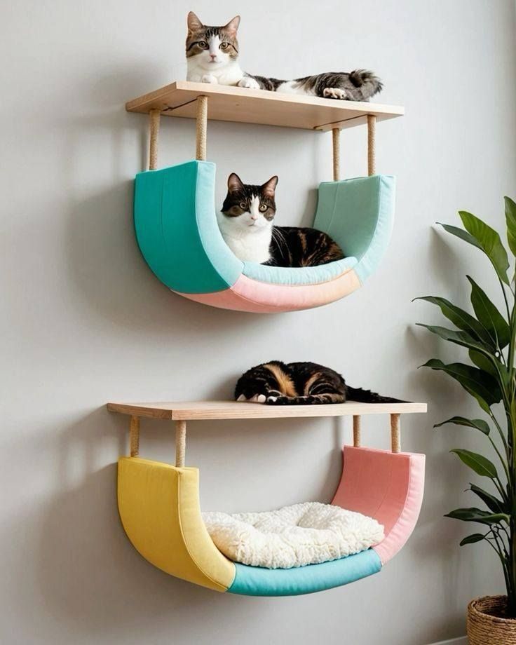 My only other suggestion for materials is either pine timber or plywood. But if you have an abundance of a different type of panel where you are then that is what you should use. In regards to safety, I suggest anchoring the cages to the wall of the house using masonry screws and only having a maximum of two levels so that it is safe for the cats and safe for you as well.
