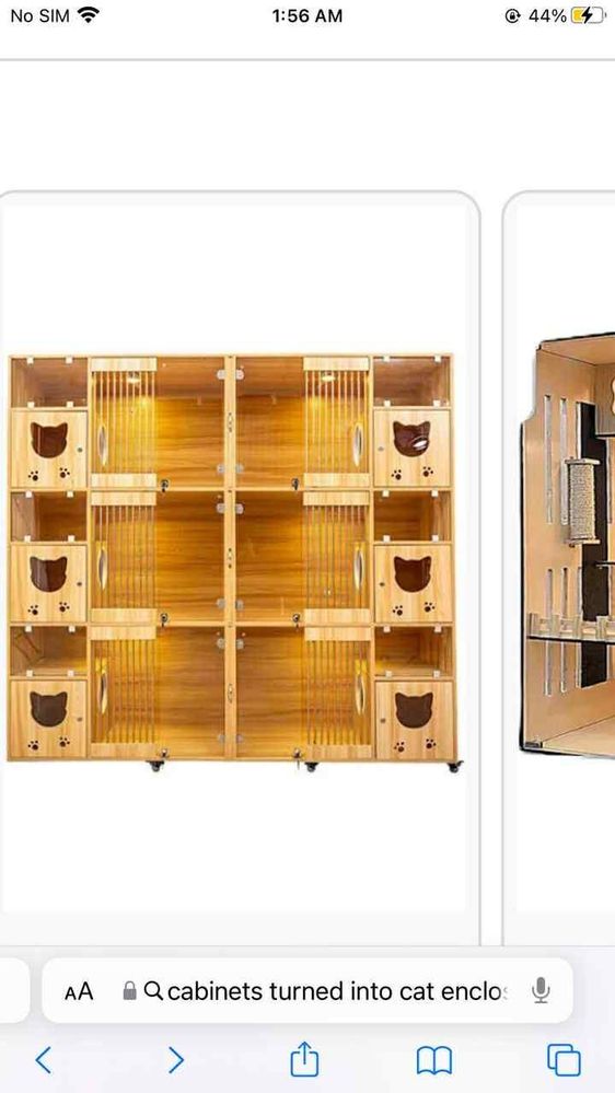 Wow, this is very useful design for my cats. But some of the material you mentioned I do not know if can get in my country. I will let the carpenter know about it in case he knows of them. I actually changed my mind to make a large floor to ceiling cabinet filled with this enclosures built side by side instead because every carpenter i asked told me its risky to mount individual enclosures on the wall without a solid metal frame. But i can incorporate your design in the the cabinets for them so likely 8x8 enclosures in one cabinet thus 2 cabinets in total that i can place in the room. Rest of the room space can be utilized as their playing space.