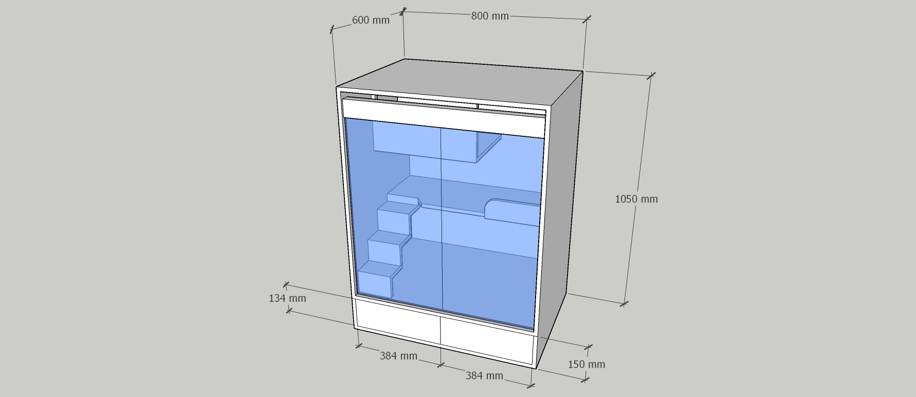 Here is an amended sketch of the cat apartment with the drawer underneath, I'm sure your carpenter can easily incorporate this into the design you have chosen. My best advice is to measure your biggest cat to make sure that they all fit into their apartment.