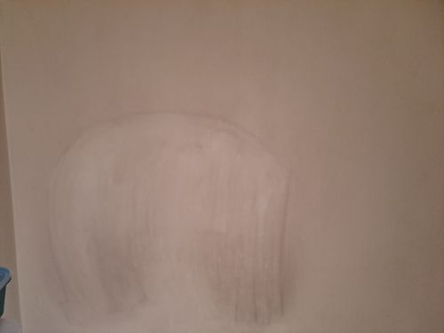 I need some help fixing this wall. It had some dust on it, and I mistakenly tried cleaning it with a wet cloth, which made it worse. Can you help me fix it?