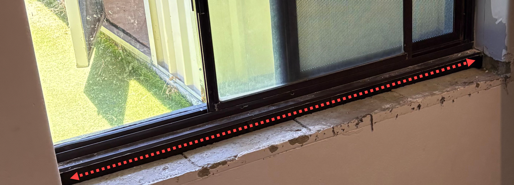 I’ve got a gap of about 30mm under the window lip. To address this, I cut the timber back flush with the wall and reinstalled it. I was advised that I could apply Bondcrete to the timber surface and then render over it, as Bondcrete would help the plaster bond to the timber.