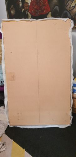 Here are the photos of the lid, it does sit on the top of the bottom frame. I have removed all the lids fabric and am ready to cut the lid(see photo). I expect that by adding in the hinges to the centre, the front edge of the lid will push out over the lip a bit , but I am happy to deal with that minor issue.