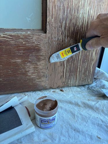 6. Next day give it a light sand over the repair areas and use the best matching timber filler and allow it to fully harden. then sand and repeat if required.