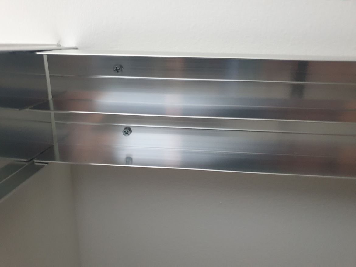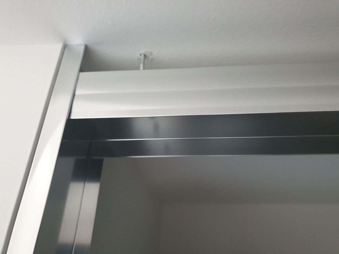 Once all the holes have plugs in them, re-install the rail using the screws that were provided in the Ramset Universal set. Use your Philips screwdriver to fully anchor the rail to the ceiling. If you can borrow a drill from a family member the repair job will go much faster. Once you have secured all the screws get your extra pair of hands to lift the wardrobe door back into place.