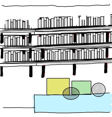Oh, and in case the images aren't clear, the more bookshelf real estate the better, so they'll start around 50cm from the ceiling and probably be replicated 3, hopefully 4 shelves down the wall (for whatever span solution we can gather).