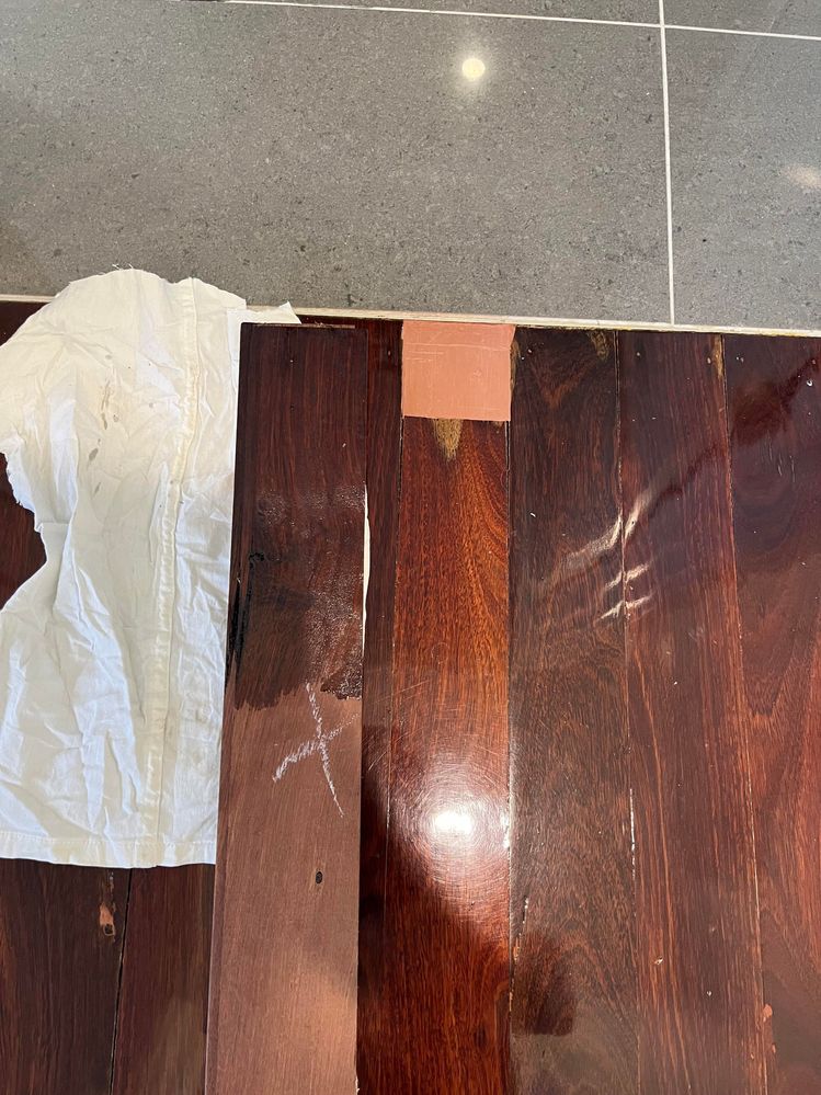 She applied a bit of "Cabot's 1L Cabothane Clear Gloss CFP Floor Polyurethane" onto my board and whilst the board hasn't been sanded yet, it's just 1 coat and it's still wet, the color itself looks close enough!