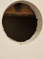 I had some sparkies in to run a cable through my wall today, and they had to cut out these three holes to complete the job.
