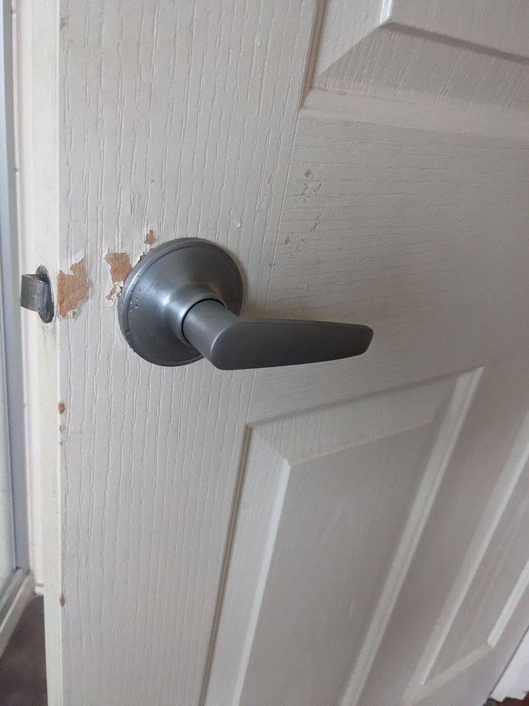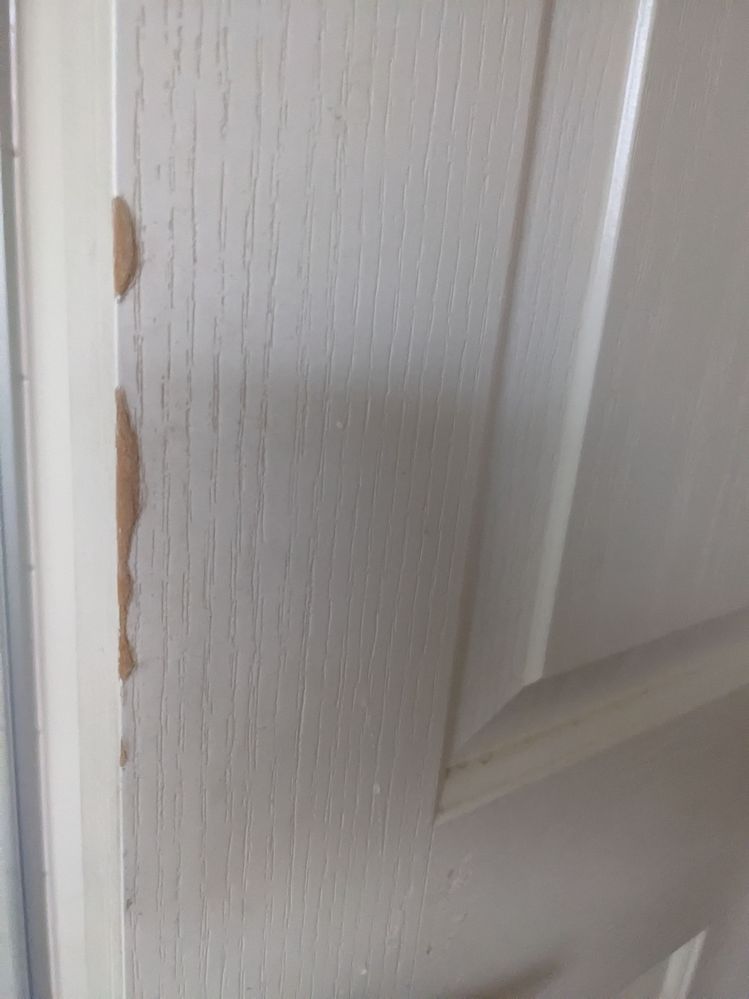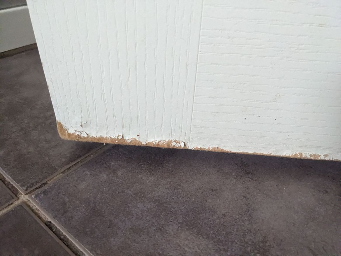 How can I fix this damage on the Bathroom doors. Most probably due to frequent use and water damage. Any tips ?