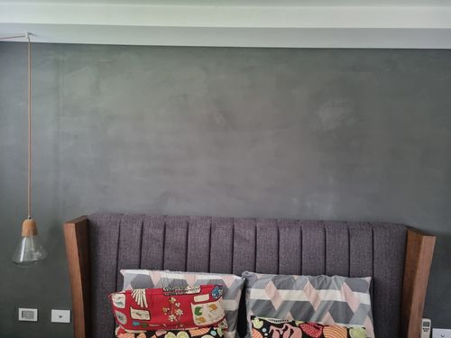 I have a textured wall in my bedroom in dark grey colour and I want to make it smooth and change the colour of the wall to match with other bedrooms which are beige in colour. I have a heavy bed which I cannot move out of the room. Need some help and advise to paint this wall as well as other 3 walls which ate smooth and in a light grey colour.