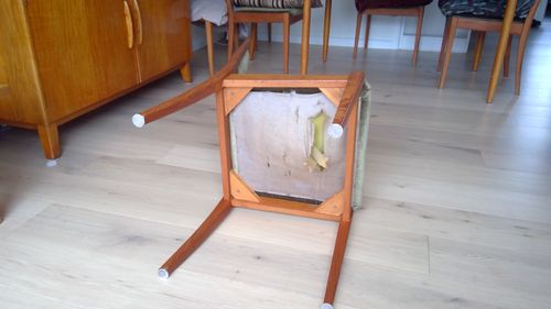 Looking for advice please on how to restore the seats of these gorgeous Fletcher Parker chairs? I wish to maintain the fabric - is still intact without rips.