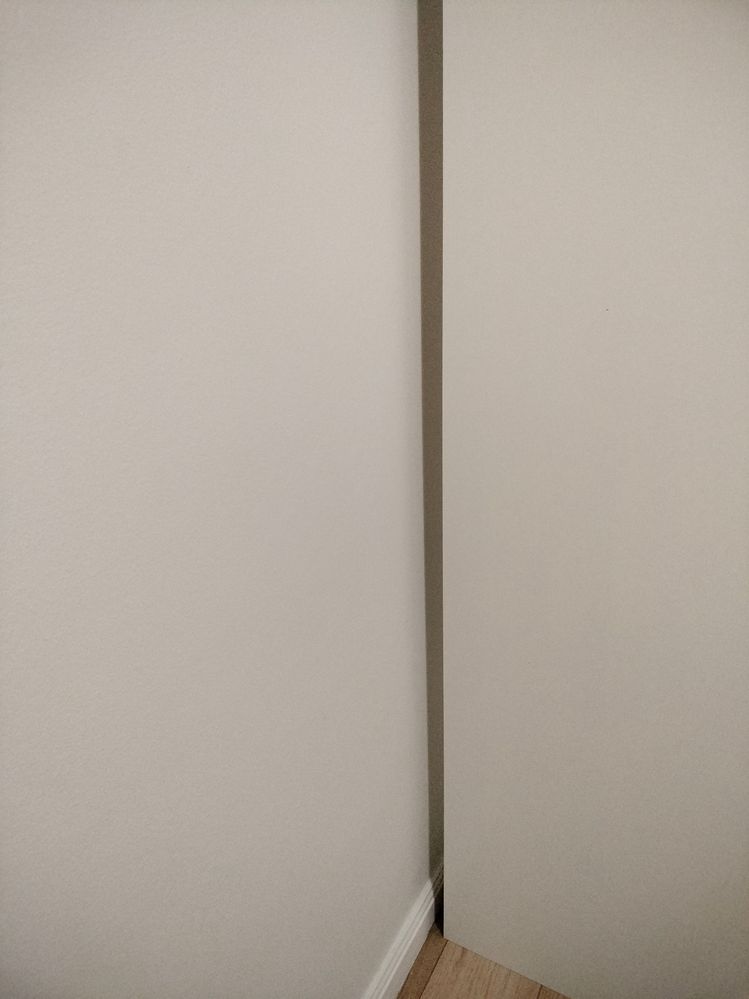 If the wardrobe is to be a permanent fixture, @victor2605  - you could also, with a multi-tool, cut the skirting, remove, then slide your cupboard up to the wall flush and anchor up top with brackets. But you also may need to add a small amount of packing under the front of the wardrobe - for that flush wall look. Hard to tell.