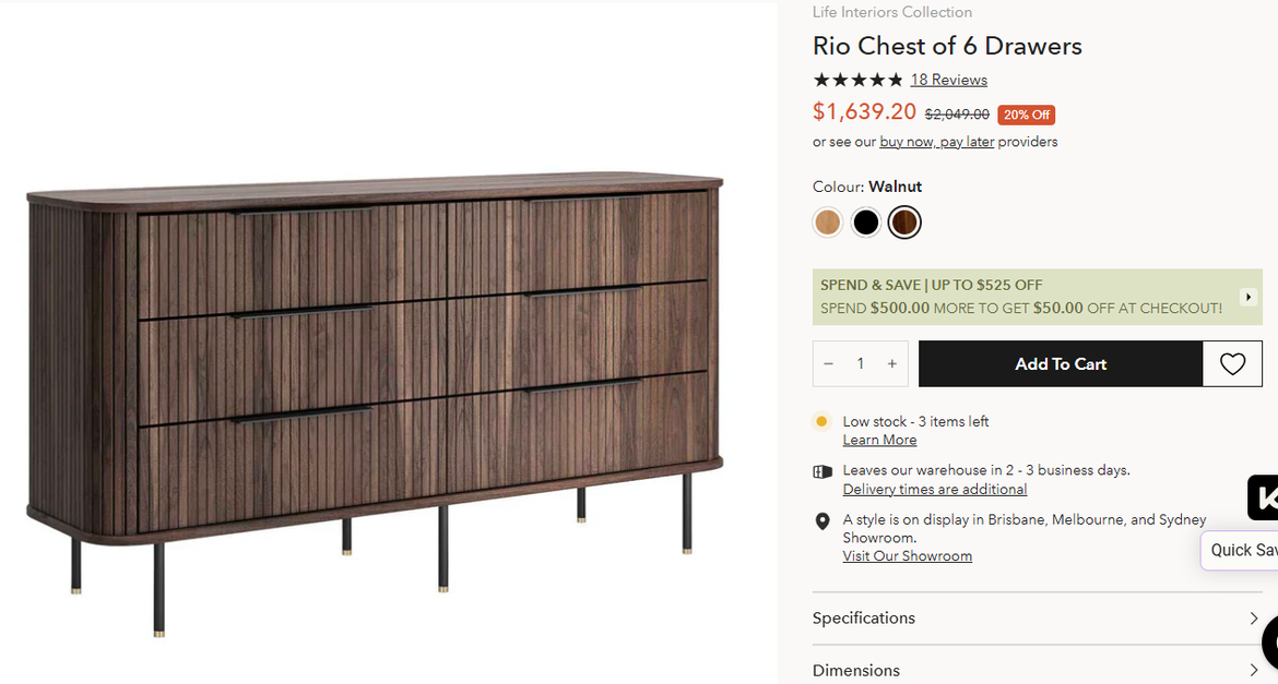 I have found a dresser with the right dimensions and price for my budget. However, the wood stain is too light for what I'm after. I like the darker walnut look of another dresser, but unfortunately, it's out of my budget.