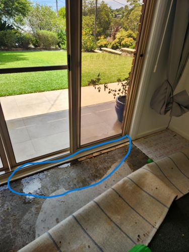 Inside the house, a timber panel sits between the bottom of the sliding door and the slab. The water is entering directly under the timber panel I.e. it doesn't appear to be entering directly under the door and the top of the timber panel is dry (blue section of second pic. Third picture shows the timber panel).