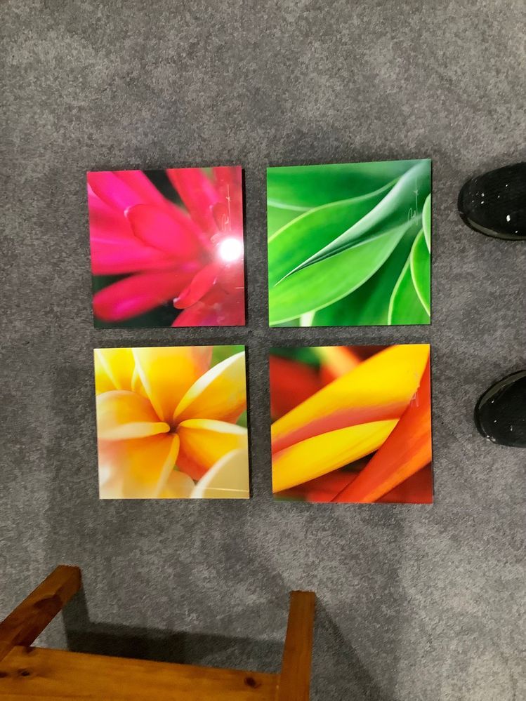 I hope someone can help me out, I have 4 glass pictures to put on a wall, my wife wants there to be the same gap between the top & bottom pictures & them side by side, I have included a couple of photos to show what I am trying to get across.