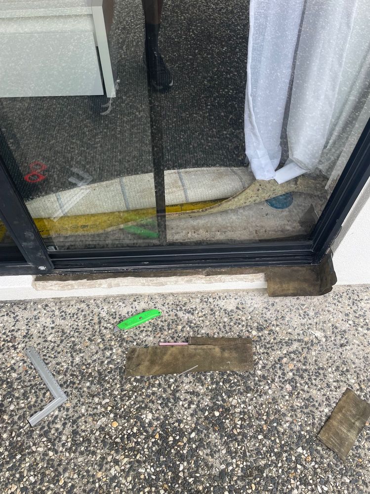 It looks like you’ve made a solid start, and what you’re doing generally makes sense. However, one thing to keep in mind is that the main defence against water getting from the outside to the inside—especially under a sliding door—is sealing the joint between the bottom of the door frame and the concrete slab. The flashing you’ve added under the frame may help divert water, but it doesn’t necessarily stop it from creeping underneath the frame itself. From your photos, the external render seems to be built up quite high to the bottom lip of the door, which may be part of the issue. Could you tell us a bit more about how the leak was occurring? Was the water creeping under the frame and then making its way inside?