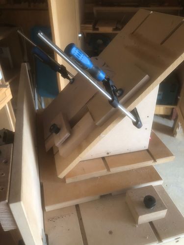 The beveled timber with domino's are the glued and clamped together and allowed to dry overnight.